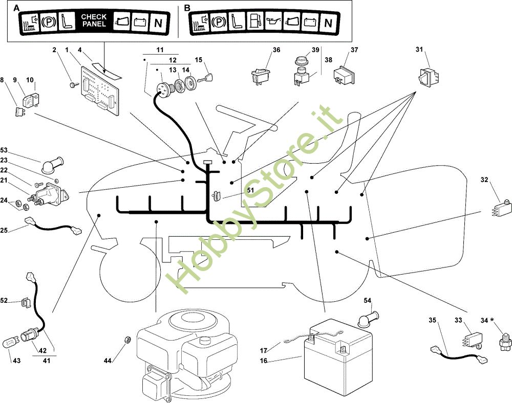 Ricambio Cablaggio Parti elettriche OM 102C/15,5M Cat.2007 Trattorino della marca Oleo-Mac Richiede pezzi:1