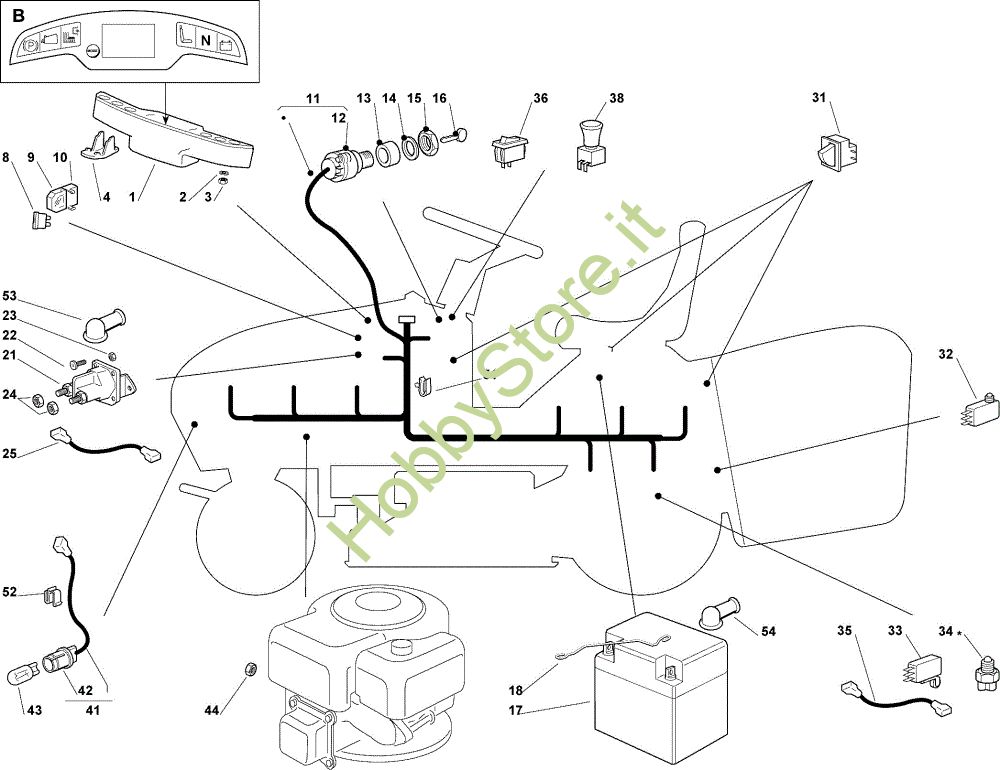 Ricambio Cablaggio Parti elettriche OM 102C/18,5H Cat.2008 Trattorino della marca Oleo-Mac Richiede pezzi:1