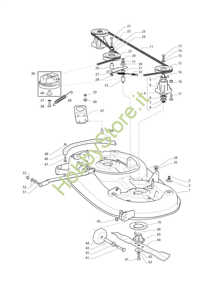 Ricambio Kit puleggia Piatto di taglio OM 108L/16 K Cat. 2023 Trattorino della marca Oleo-Mac Richiede pezzi:1
