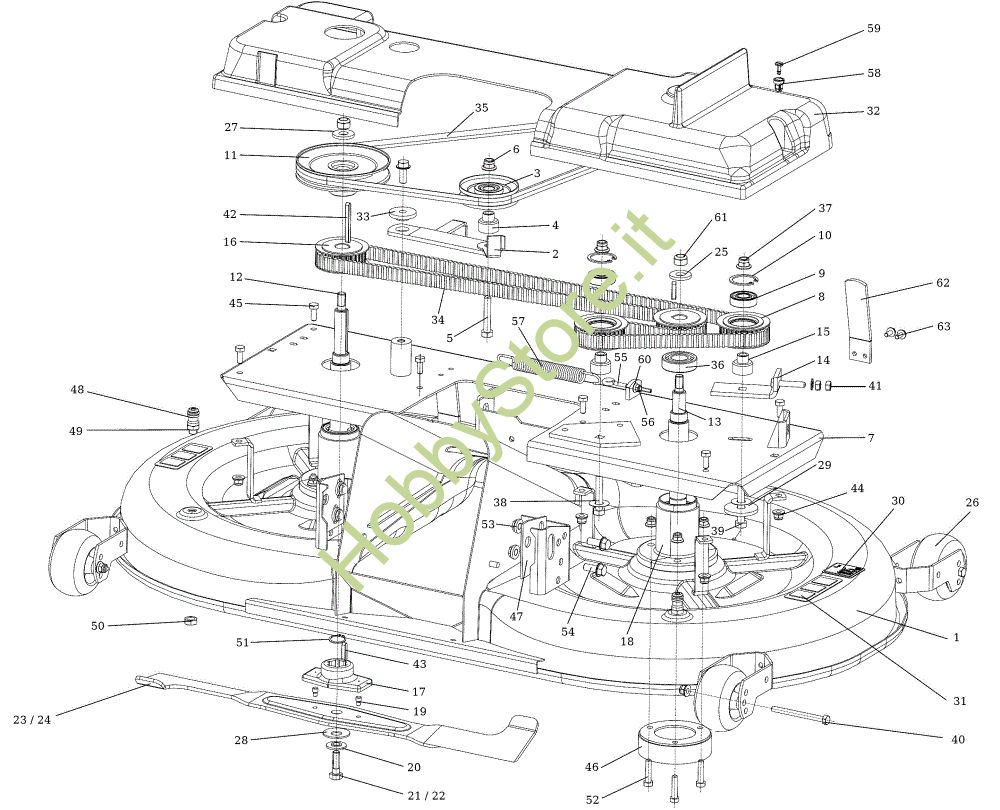 Ricambio Mozzo Piatto di taglio (1/2) OM 124/24 KH (K2400AVD V-Twin - EURO5) Cat. 2022 Trattorino della marca Oleo-Mac Richiede pezzi:4