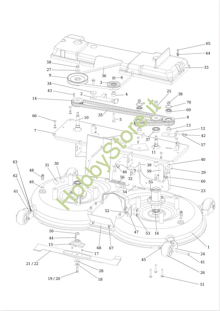 Ricambio cesto Piatto di taglio (1) OM 124/24 KH (K2400AVD V-Twin) Cat. 2015 Trattorino della marca Oleo-Mac
