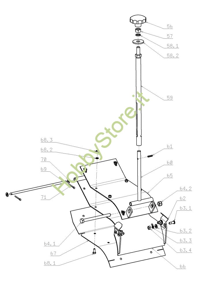 Ricambio Asta Piatto di taglio (3/3) OM 105J/23H Cat.2009 Trattorino (solo per il mercato tedesco) della marca Oleo-Mac Richiede pezzi:1