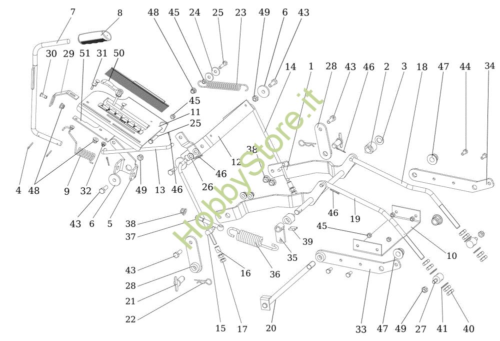 Ricambio Braccio sollevamento Regolazione piatto di taglio EF 124/22 HP Cat. 2023 Trattorino della marca Efco Richiede pezzi:2