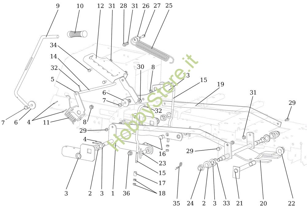 Ricambio Albero Regolazione piatto di taglio OM 92/16KH (K1600AVD) Cat. 2023 Trattorino della marca Oleo-Mac Richiede pezzi:1