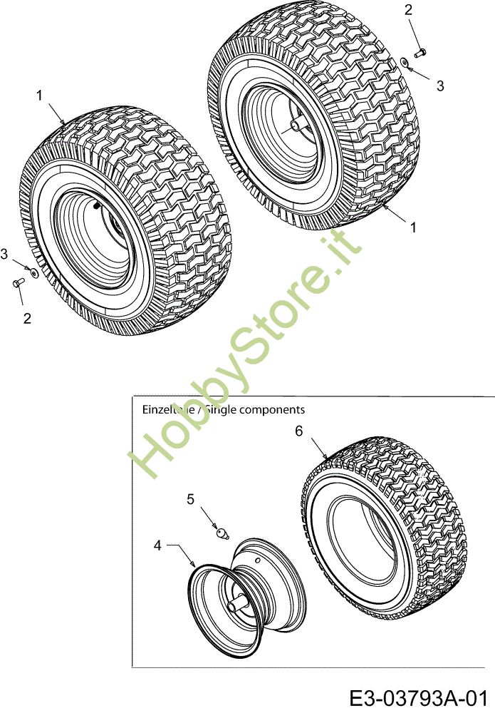 Ricambio Ruota Grigio; Grey Ruote posteriori TORNADO 108/20 H Trattorino della marca Oleo-Mac Richiede pezzi:2