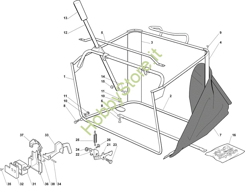 Ricambio Grower Sacco OM 102C/17,5H Cat.2006 Trattorino della marca Oleo-Mac Richiede pezzi:4