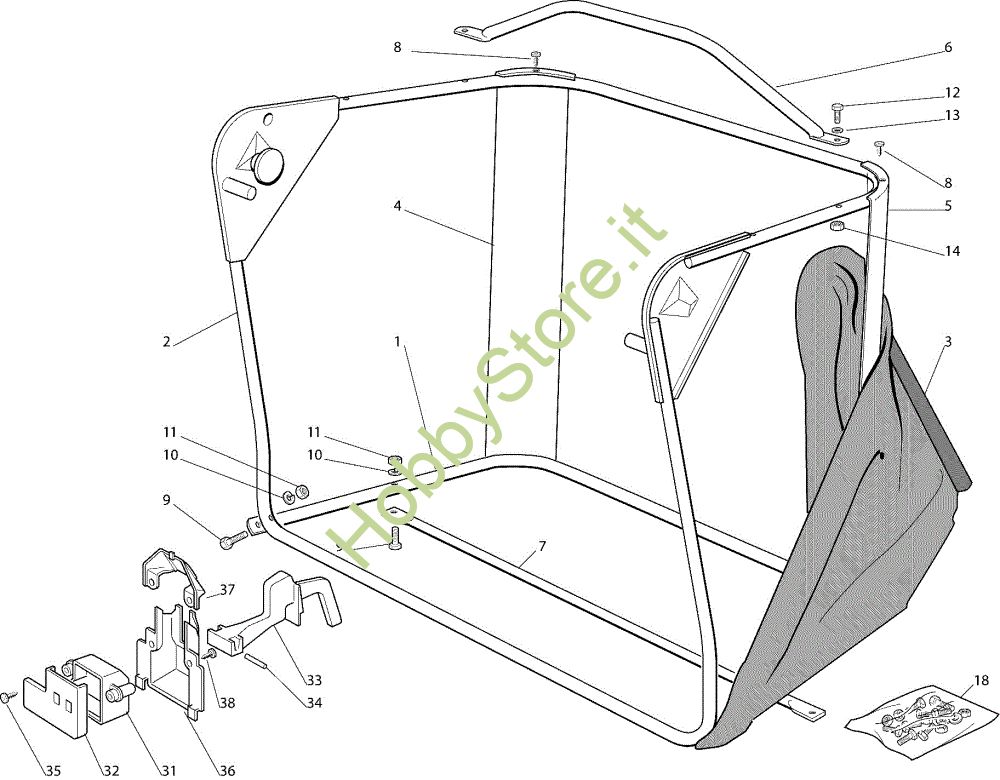Ricambio Grower Sacco OM 72C/12,5H Cat.2007 Trattorino della marca Oleo-Mac Richiede pezzi:4