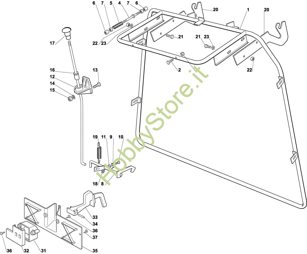 Ricambio Leva Sacco (Parte fissa) EF 92C/13,5H Cat.2001 Trattorino della marca Efco Richiede pezzi:1