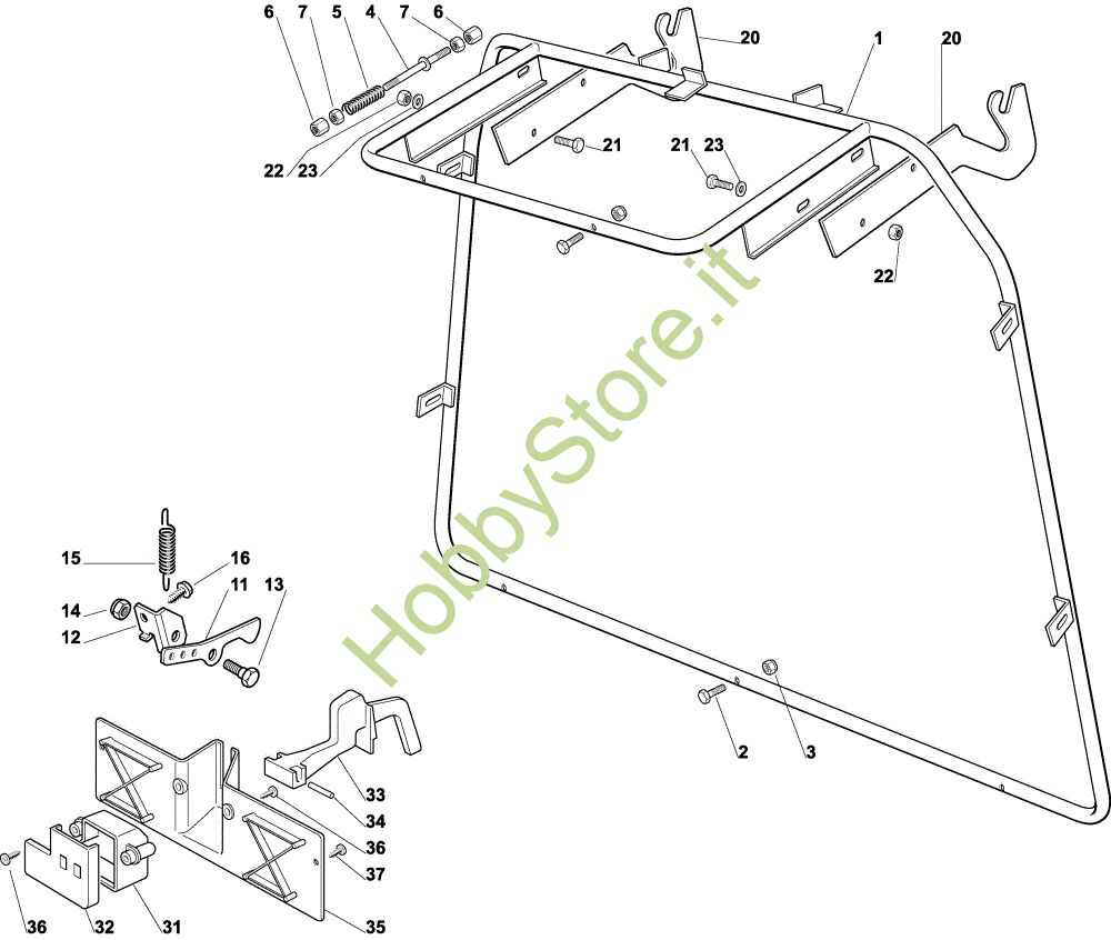 Ricambio Staffa Sacco (Parte fissa) OM 92C/13,5M Cat.2004 Trattorino della marca Oleo-Mac Richiede pezzi:1