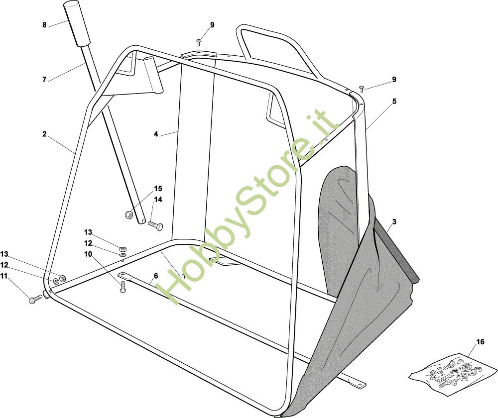 Ricambio Grower Sacco (Parte mobile) EF 92C/13,5M Cat.2004 Trattorino della marca Efco Richiede pezzi:4