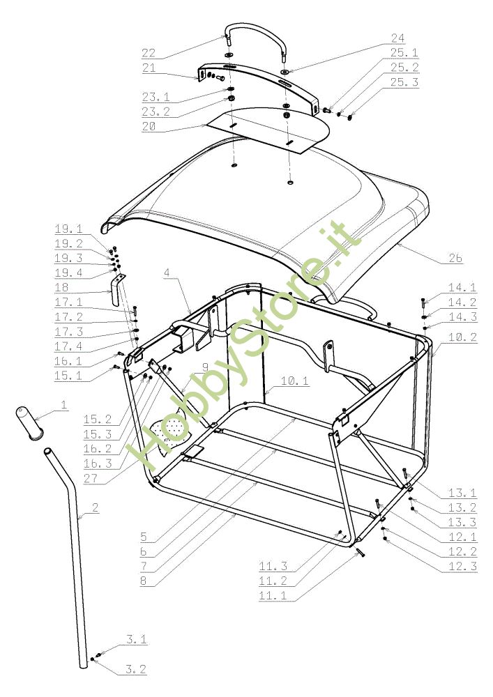 Ricambio Telaio Sacco raccoglierba EF 124J/22H Cat.2009 Trattorino della marca Efco Richiede pezzi:1
