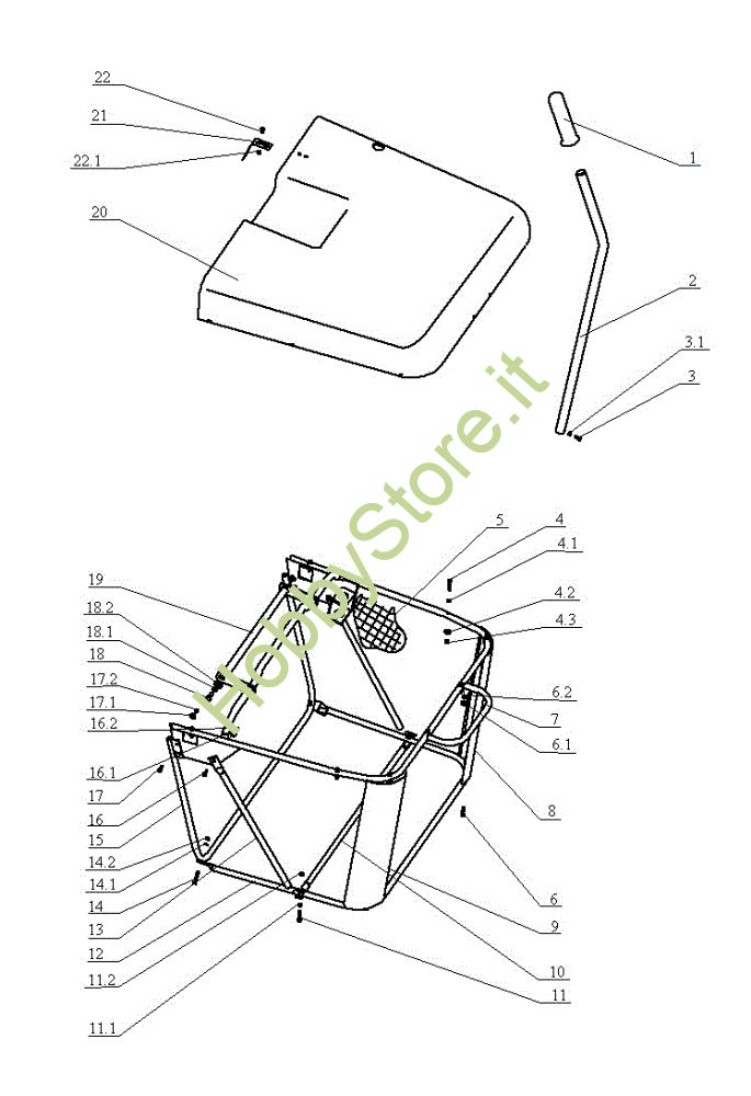 Ricambio Telaio superiore Sacco raccoglierba OM 104J/16H Cat.2005 Trattorino della marca Oleo-Mac Richiede pezzi:1