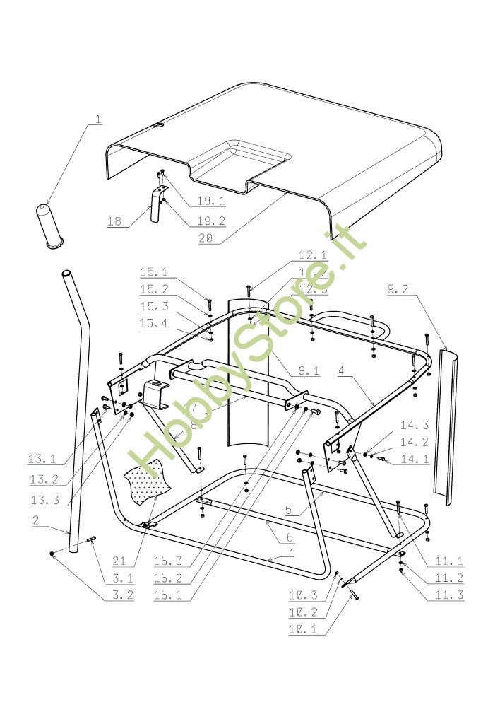 Ricambio Telaio superiore Sacco raccoglierba OM 104J/16H Cat.2006-2007 Trattorino della marca Oleo-Mac Richiede pezzi:1