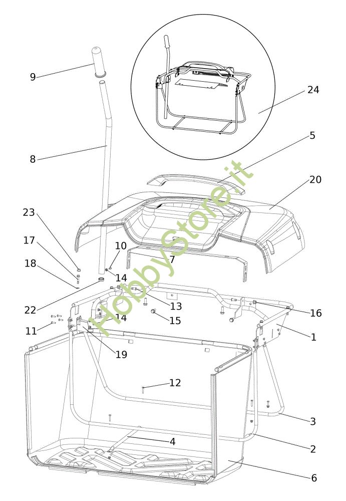Ricambio Telaio superiore Sacco raccoglierba OM 106/22 H Change Cat. 2023 Trattorino della marca Oleo-Mac Richiede pezzi:1