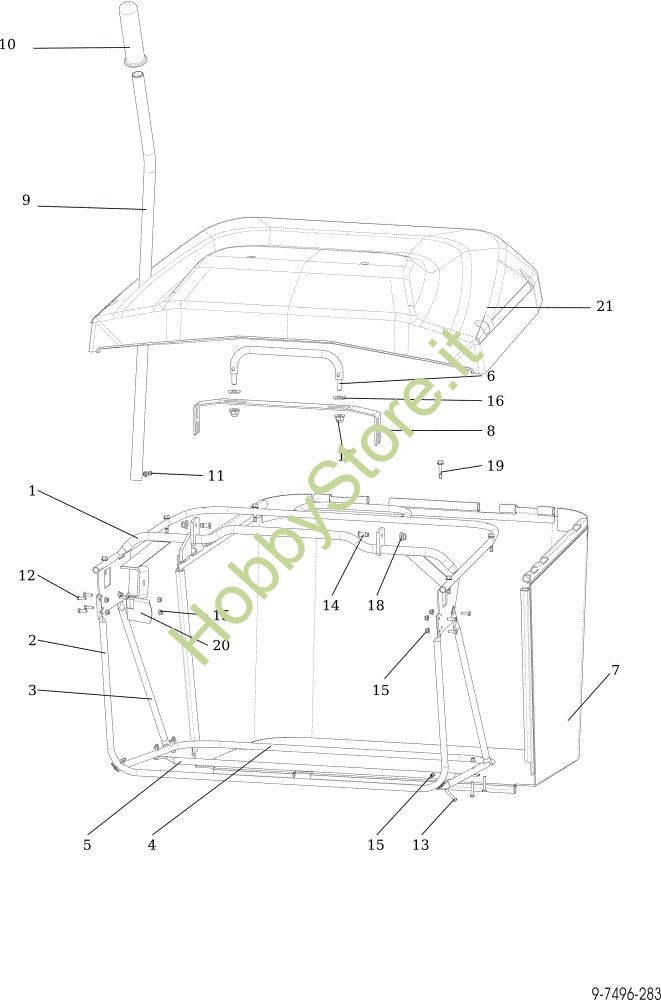 Ricambio Coperchio Sacco raccoglierba OM 92/16H Cat.2022 Trattorino OM 92/16H della marca Oleo-Mac Richiede pezzi:1