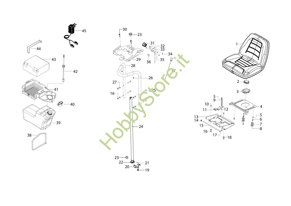 Ricambio Batteria Serbatoio e sedile OM 105/24 K H Trattorino della marca Oleo-Mac Richiede pezzi:1