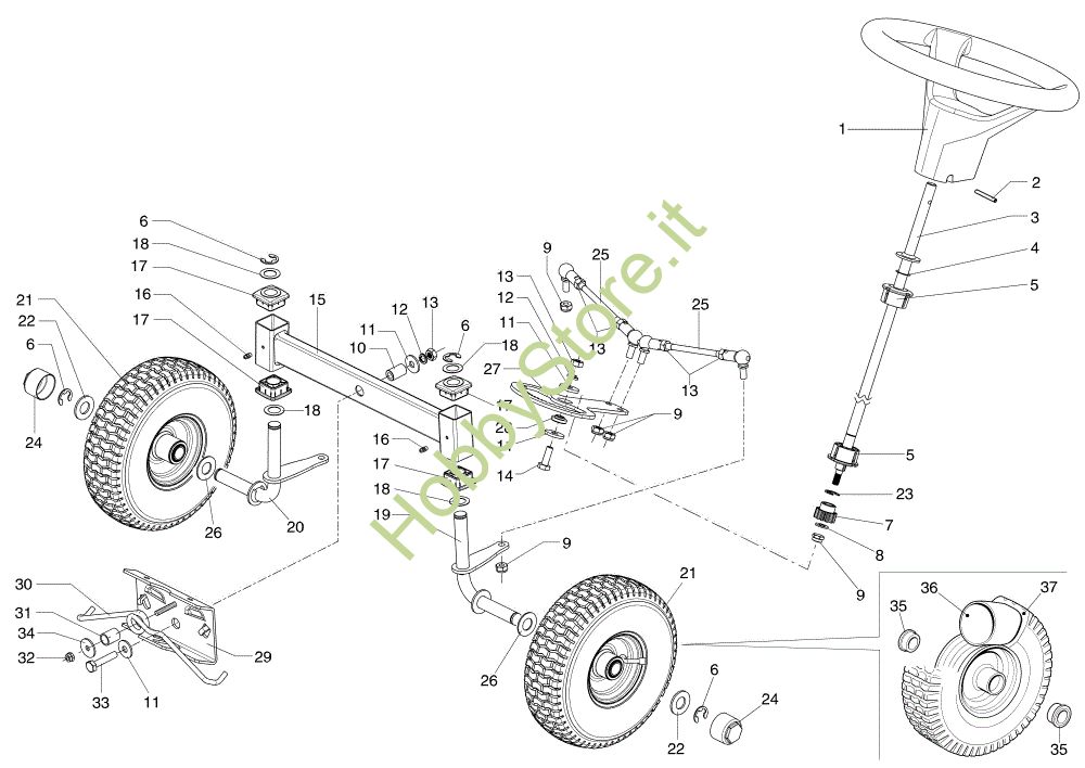 Ricambio Assale anteriore Sterzo ZEPHYR 72/12,5 K H (3in1) (K1250) EURO 5 Trattorino della marca Efco Richiede pezzi:1