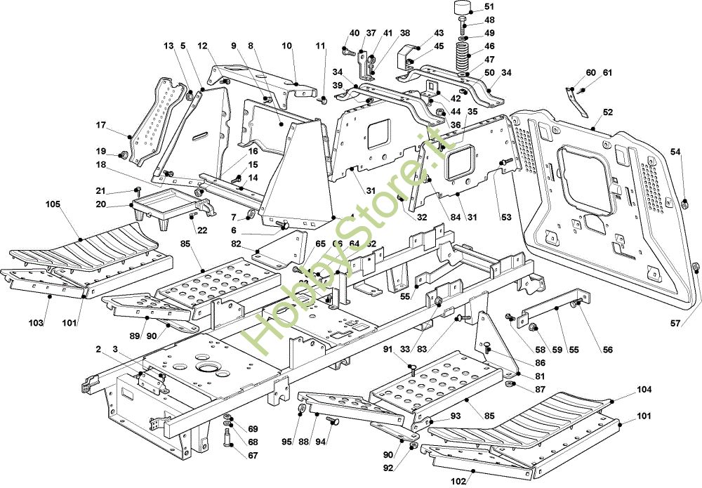 Ricambio Piastra Telaio OM 93C/13,5H France Cat.2009 Trattorino della marca Oleo-Mac Richiede pezzi:1