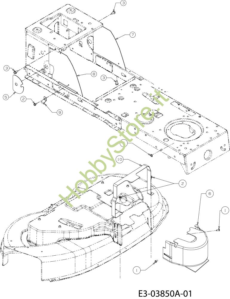 Ricambio Coperchio Telaio hydro POLO 95/11,5 T France Cat.2008 Trattorino (solo per il mercato francese) della marca Oleo-Mac Richiede pezzi:1