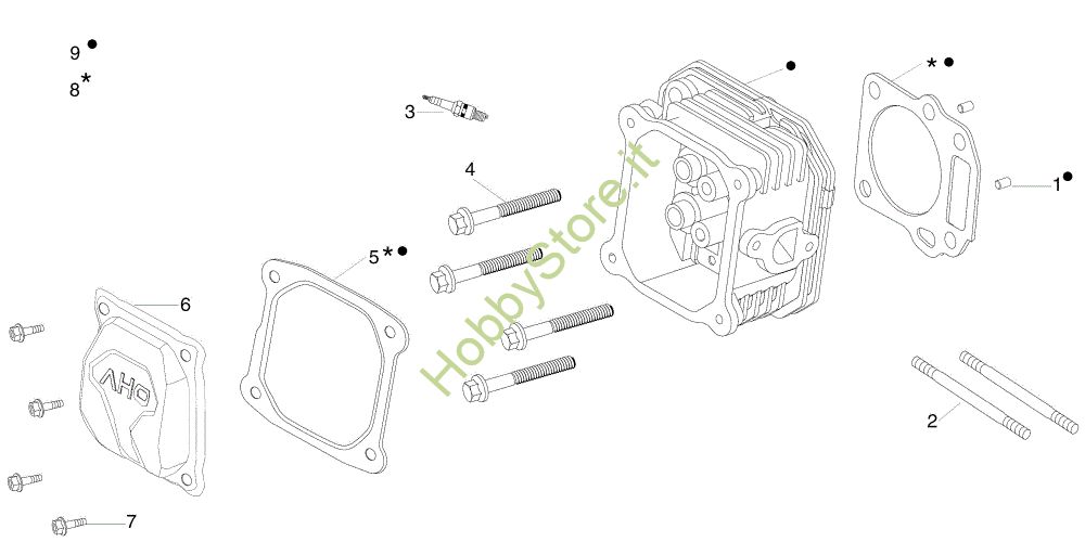 Ricambio Kit coperchio Testata MISTRAL 72/12,5 K H (3in1) (K1250) EURO 5 Trattorino della marca Oleo-Mac Richiede pezzi:1