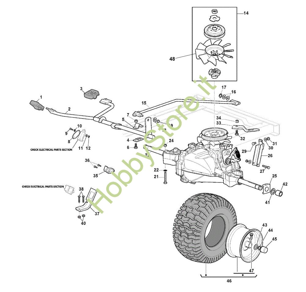 Ricambio Ventola completa Trasmissione GLX 14-98HS Trattorino della marca Efco Richiede pezzi:1