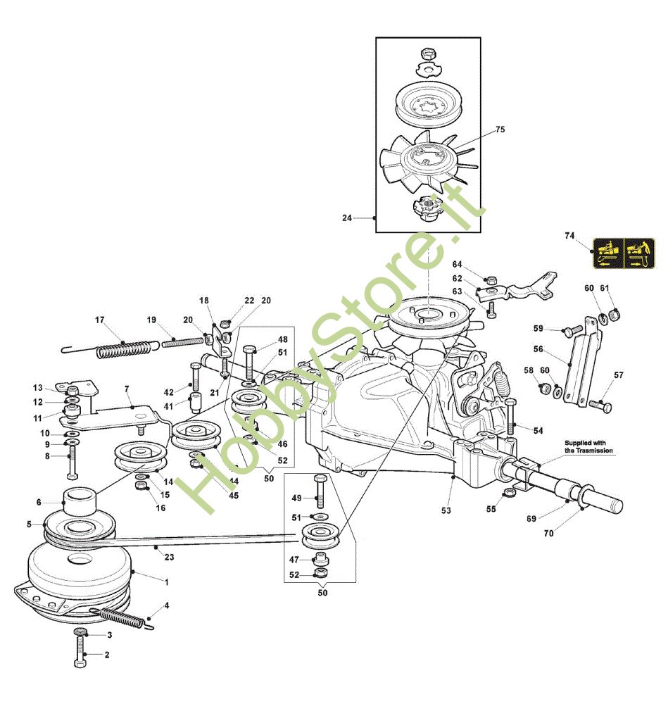 Ricambio Ventola completa Trasmissione GLX 22-102 H2 Trattorino della marca Oleo-Mac Richiede pezzi:1
