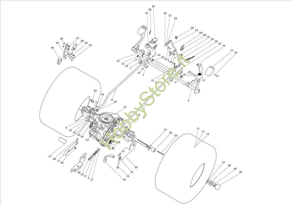 Ricambio Pedale freno Trasmissione OM 107 L/24 KH (K2400AVD V-Twin - EURO5) Cat. 2023 Trattorino della marca Oleo-Mac Richiede pezzi:1