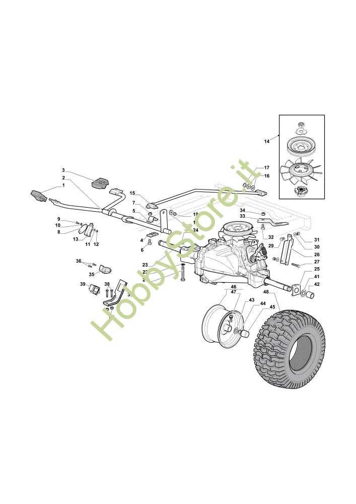 Ricambio Asse posteriore Trasmissione OM 84/14,5 K H Cat. 2018 Trattorino della marca Oleo-Mac Richiede pezzi:1
