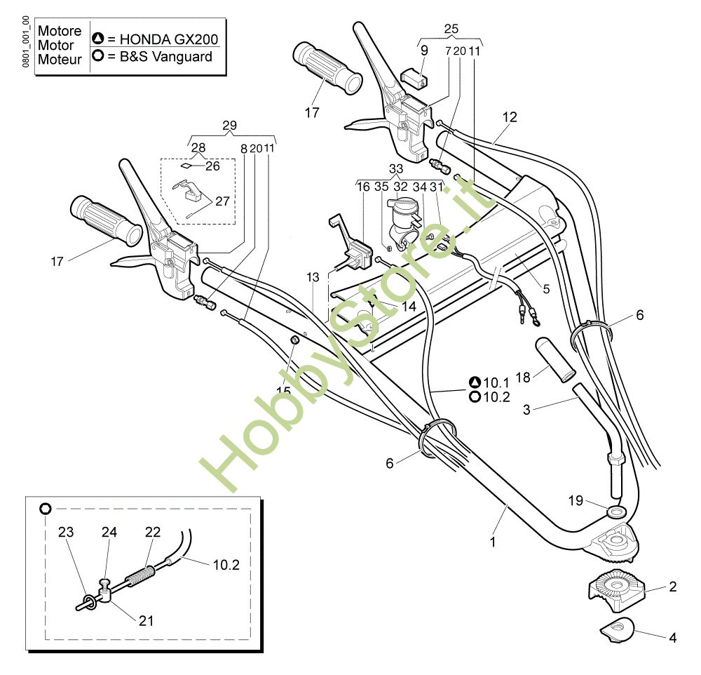 Ricambio Trasmissione Honda GX200 Manubrio e comandi NTS 50 (Fino/Until 2009) Trinciasarmenti della marca Nibbi Richiede pezzi:1