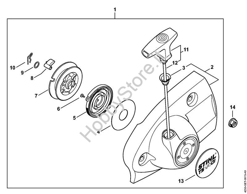 Ricambio Coperchio avviamento con dispositivo di avviamento Troncatrici (TS) TS 480i-A STIHL Contiene anche i ricambi da n. 2 a 13