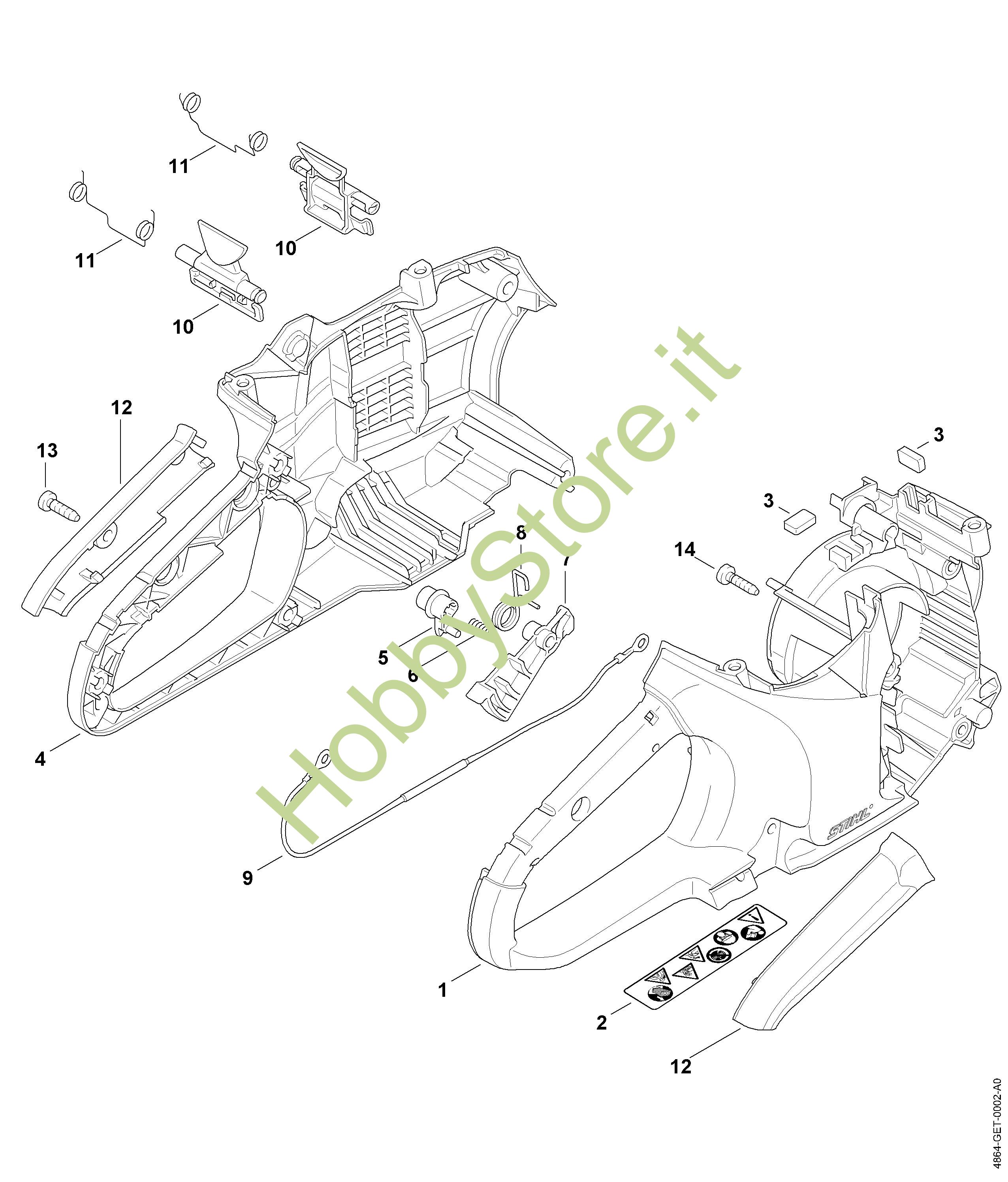 Ricambio Corpo impugnatura destra Troncatrici a batteria (TSA) TSA 230 STIHL Contiene anche i ricambi n. 2 e 3