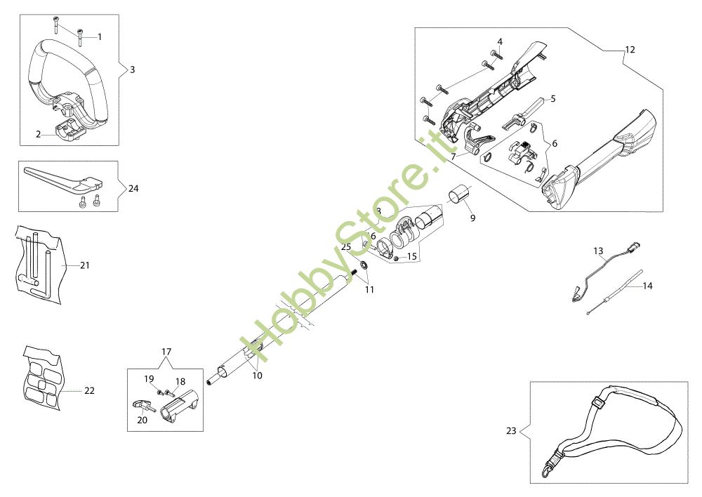 Ricambio Leva acceleratore Trasmissione Unità motore (Ø 24/24 mm) della marca Oleo-Mac Richiede pezzi:1