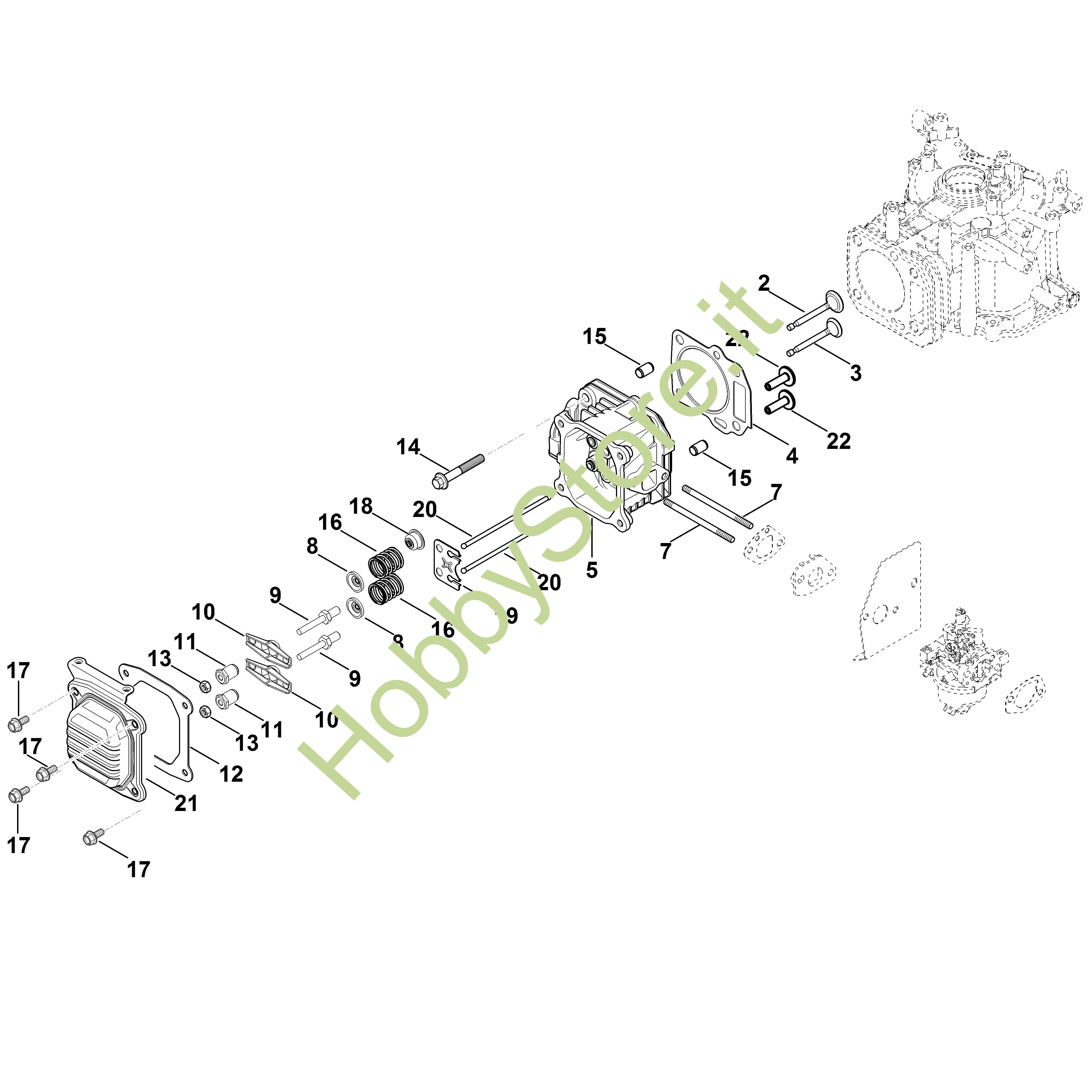 Ricambio originale Set parti valvola Kohler XT-6 XT-675 (XT675-0022) Stihl Contiene anche i ricambi nr. 2,3,8 a 12,15,16,18 a 20