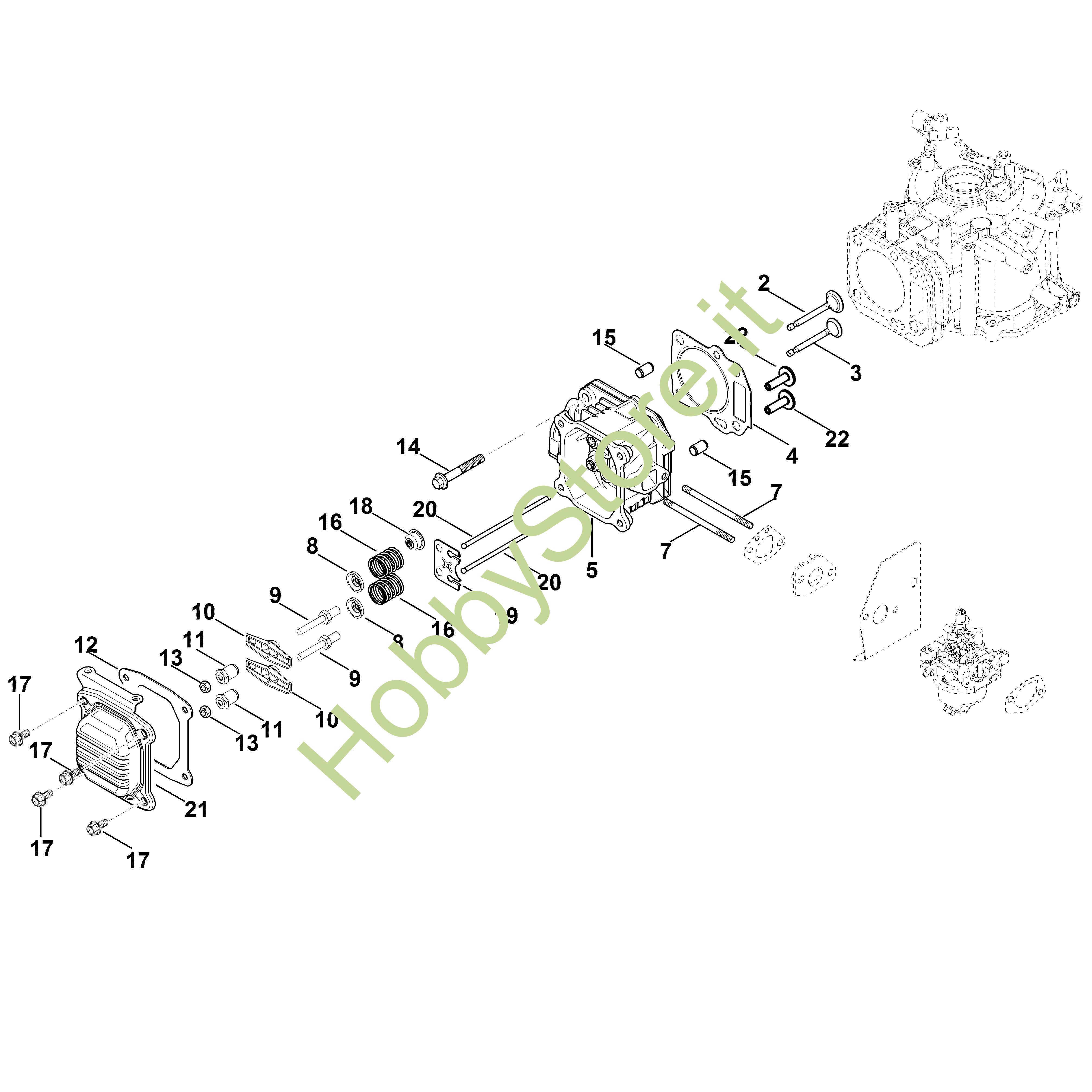 Ricambio originale Set parti valvola Kohler XT-6 XT-675 (XT675-2019) Stihl Contiene anche i ricambi nr. 2,3,8 a 12,15,16,18 a 20