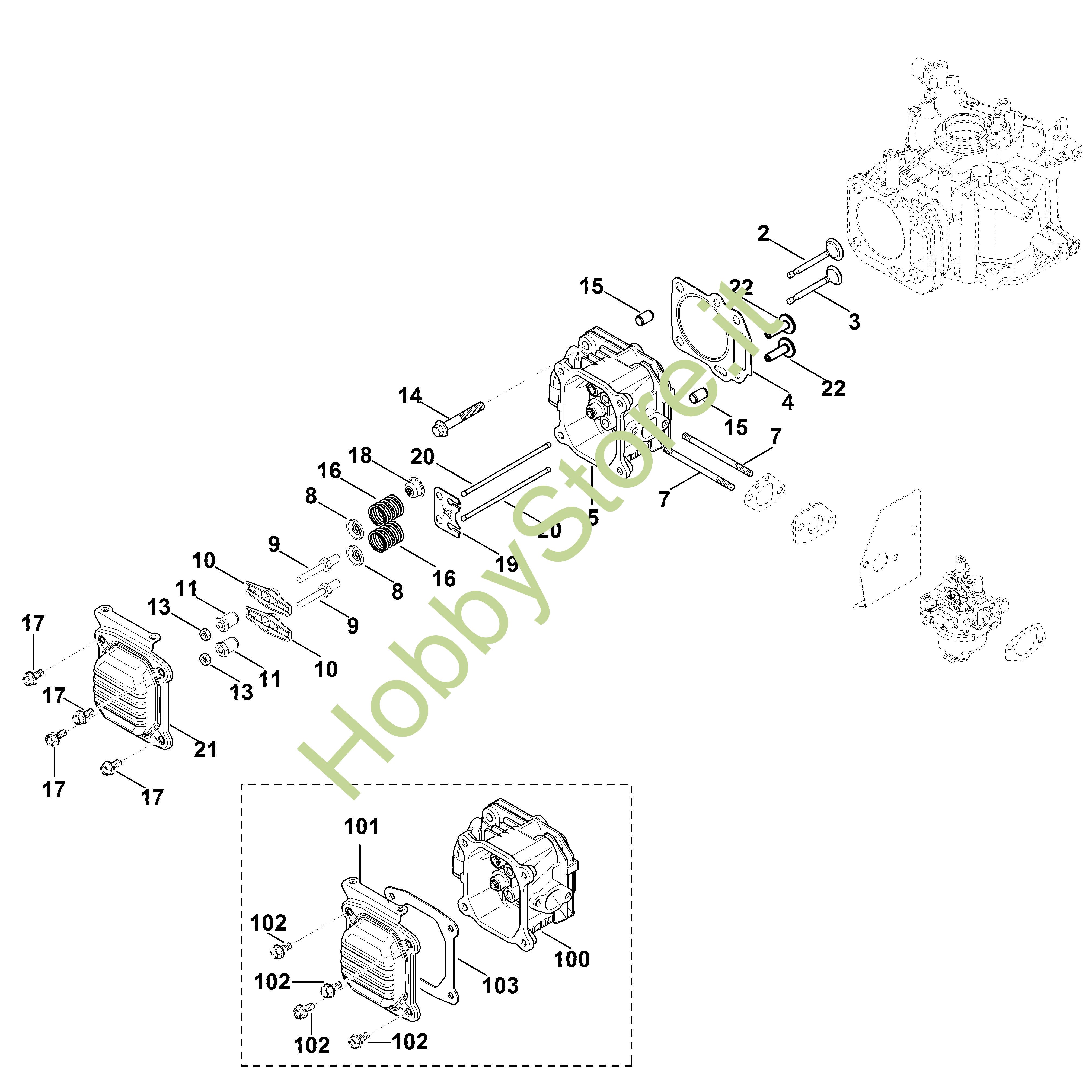 Ricambio originale Set parti valvola Kohler XT-6 XT-675 (XT675-2046) Stihl Contiene anche i ricambi nr. 2,3,8 a 12,15,16,18 a 20