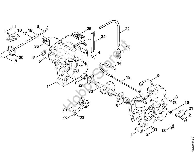 Ricambio Biella completa Motoseghe a benzina (MS) 011 AVEQ STIHL Contiene anche i ricambi n. 33