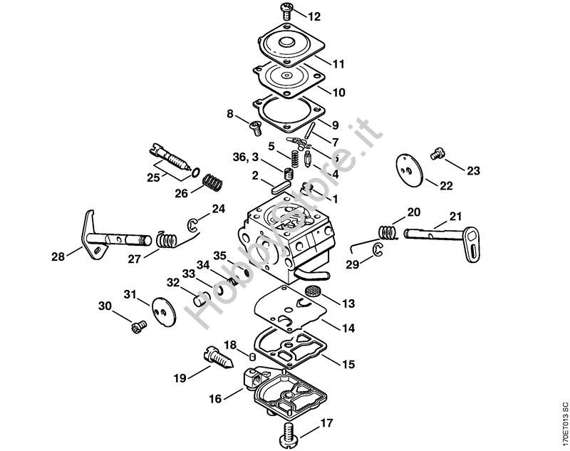 Ricambio Carburatore C1Q-S46D Motoseghe a benzina (MS) 019 T STIHL Contiene anche i ricambi da n. 1 a 35