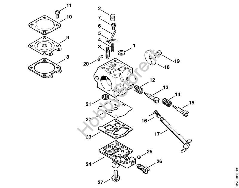 Ricambio Serie particolari carburatore Motoseghe a benzina (MS) 024 SWVH STIHL Contiene anche i ricambi nr. da 3 a 5, 8, 9, 21 a 23