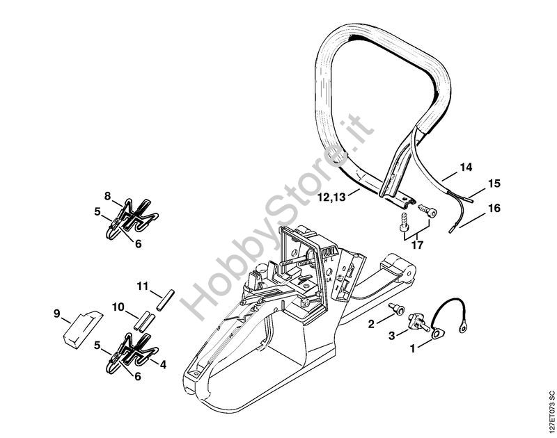 Ricambio Manico tubolare Motoseghe a benzina (MS) 024 SWVH STIHL Contiene anche i ricambi da n. 14 a 16