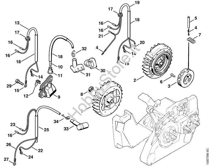 Ricambio Modulo di accensione Motoseghe a benzina (MS) 026 STIHL Contiene anche i ricambi da n. 10 a 12