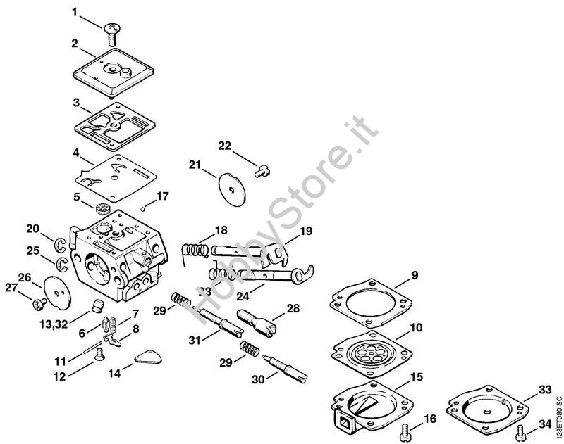 Ricambio Carburatore C3A-S31G Motoseghe a benzina (MS) 034 STIHL Contiene anche i ricambi da n. 1 a 31