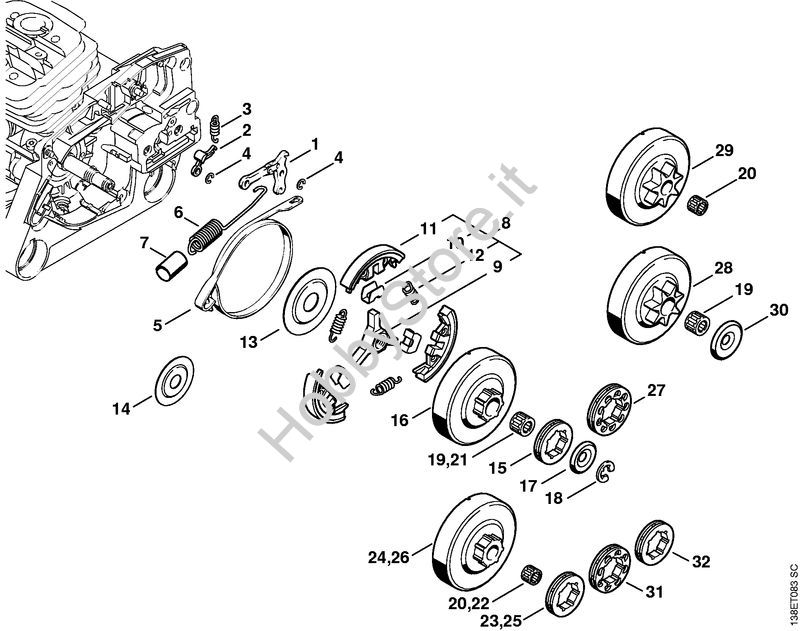 Ricambio Frizione Motoseghe a benzina (MS) 036 Arctic STIHL Contiene anche i ricambi da n. 8 a 13