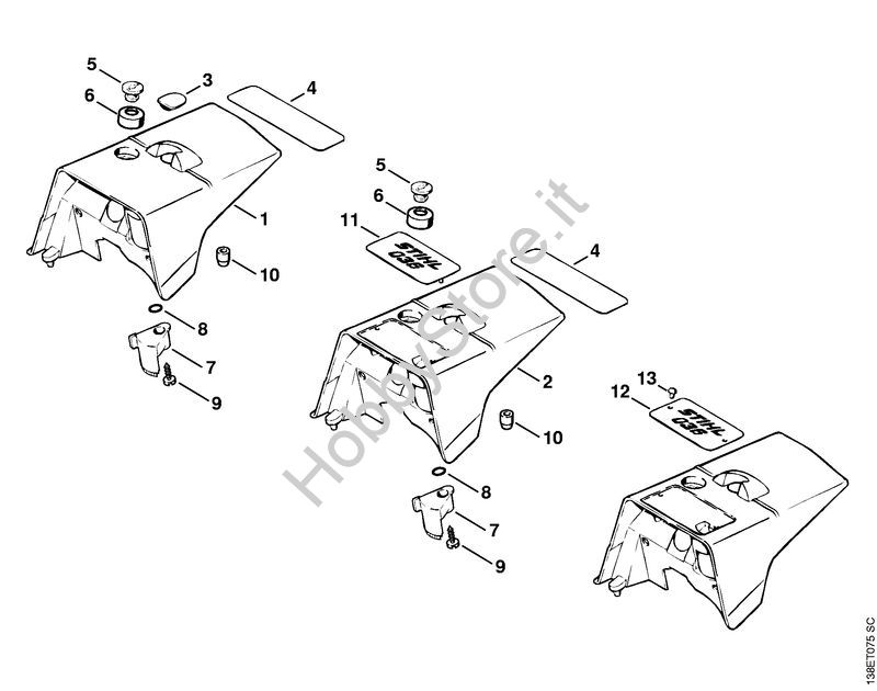 Ricambio Cappottatura Motoseghe a benzina (MS) 036 BR STIHL Contiene anche i ricambi da n. 3 a 9