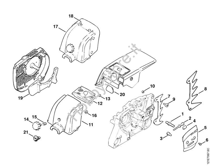 Ricambio Coperchio sede carburatore Motoseghe a benzina (MS) 038 FB STIHL Contiene anche i ricambi da n. 12 a 16