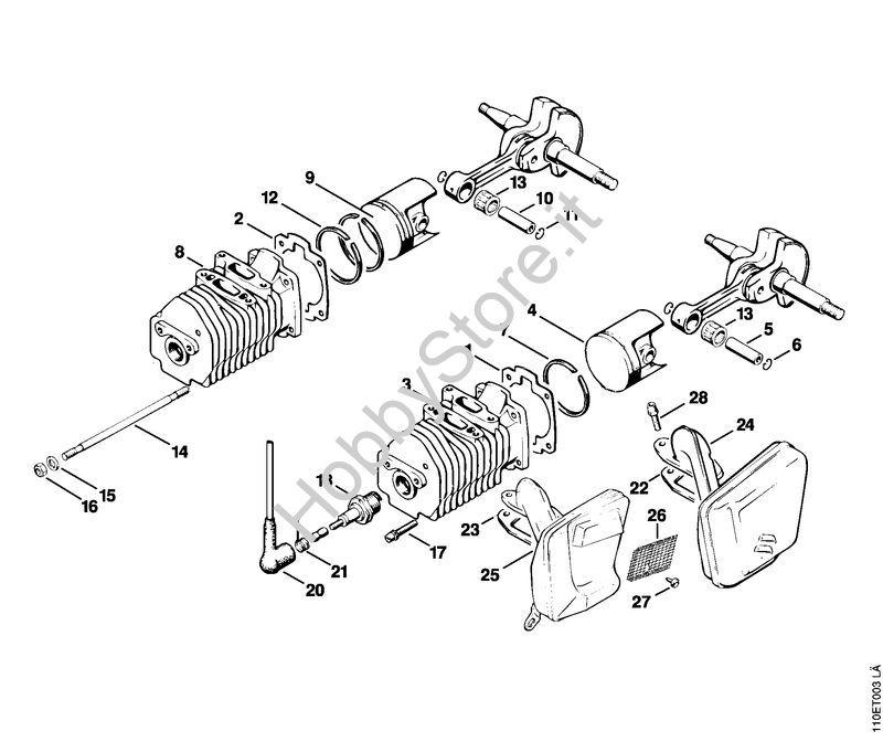 Cilindro, silenziatore Motoseghe a benzina (MS) 041 AVQ della marca STIHL