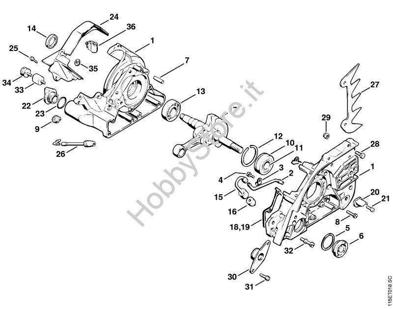 Carter albero a gomito, albero a gomito Motoseghe a benzina (MS) 045 AV della marca STIHL