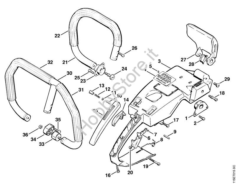 Manico a telaio, manico tubolare Motoseghe a benzina (MS) 045 AVSE della marca STIHL
