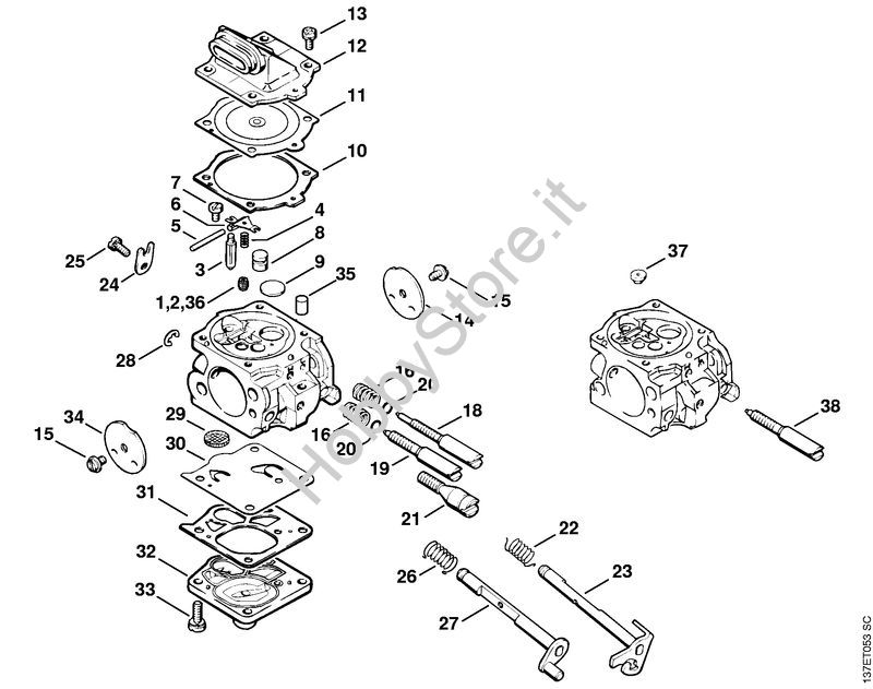 Ricambio Carburatore WJ-67B Motoseghe a benzina (MS) 066 BR STIHL Contiene anche i ricambi nr. 1 e da 3 a 35