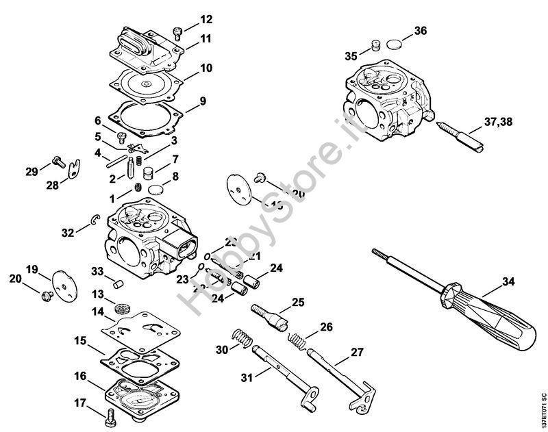 ATTENZIONE: Se nella lista sotto non compaiono i relativi ricambi riportati nell'esploso