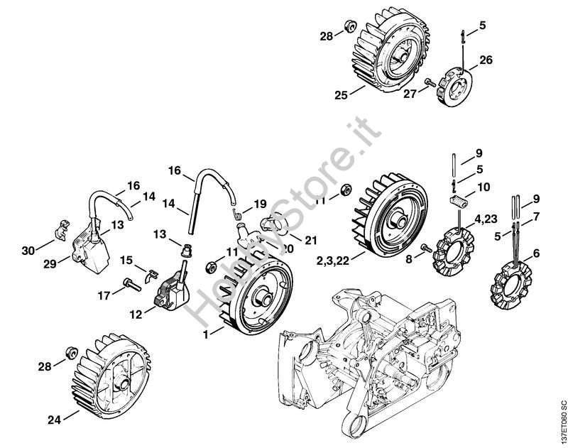 Ricambio Modulo di accensione Motoseghe a benzina (MS) 066 MR STIHL Contiene anche i ricambi da n. 13 a 15